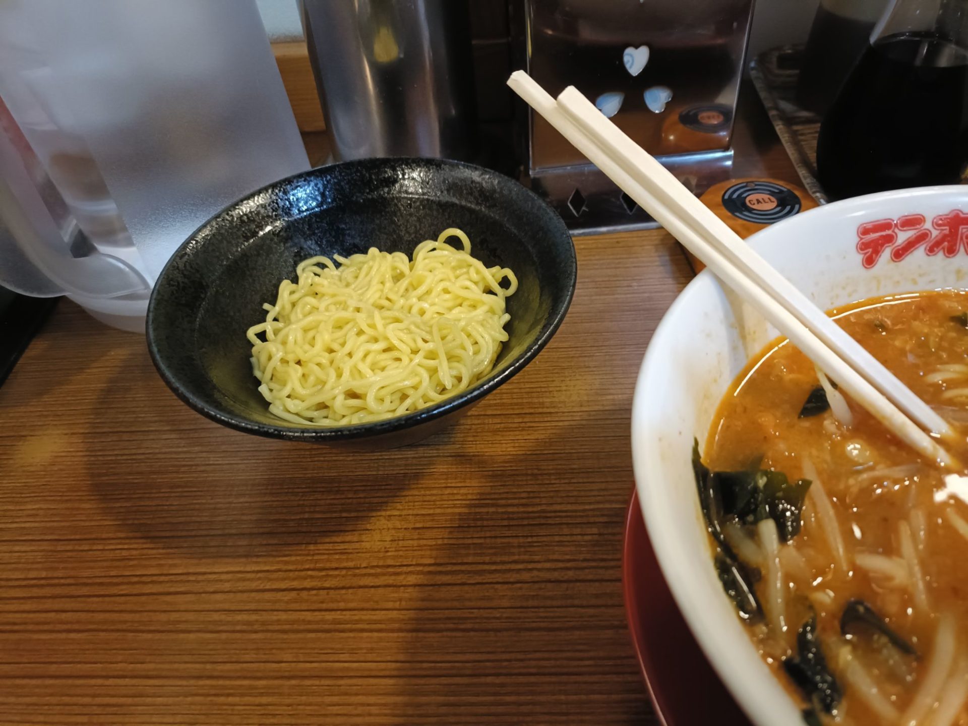 私は今回、半玉(90円)を追加。最後まで熱々の麺を楽しめました。