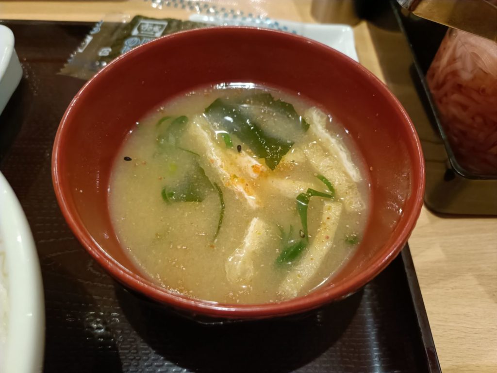 セットについてくる、わかめと油揚げとネギのスタンダードなみそ汁。