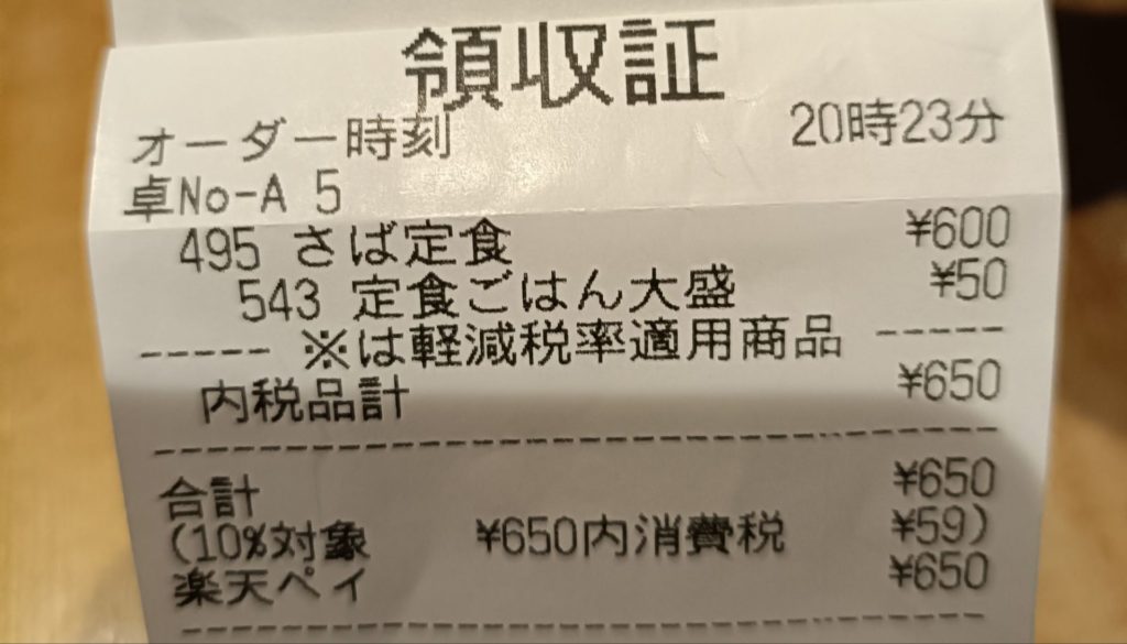 たった650円で、この満足感が得られるのです。レシート(領収証)を見ても、このコスパの良さに思わずニヤけてしまいます。