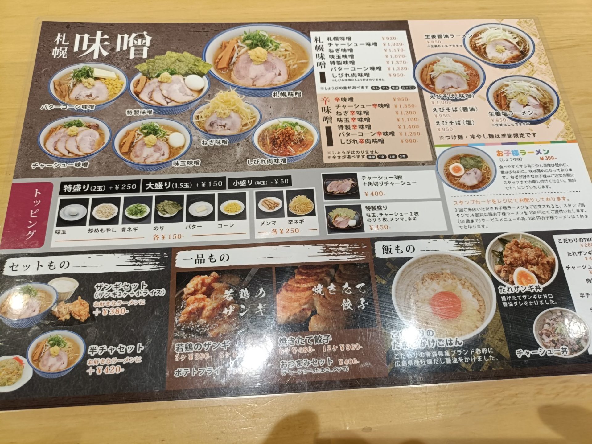 メニューには魅力的な味噌ラーメンがずらり