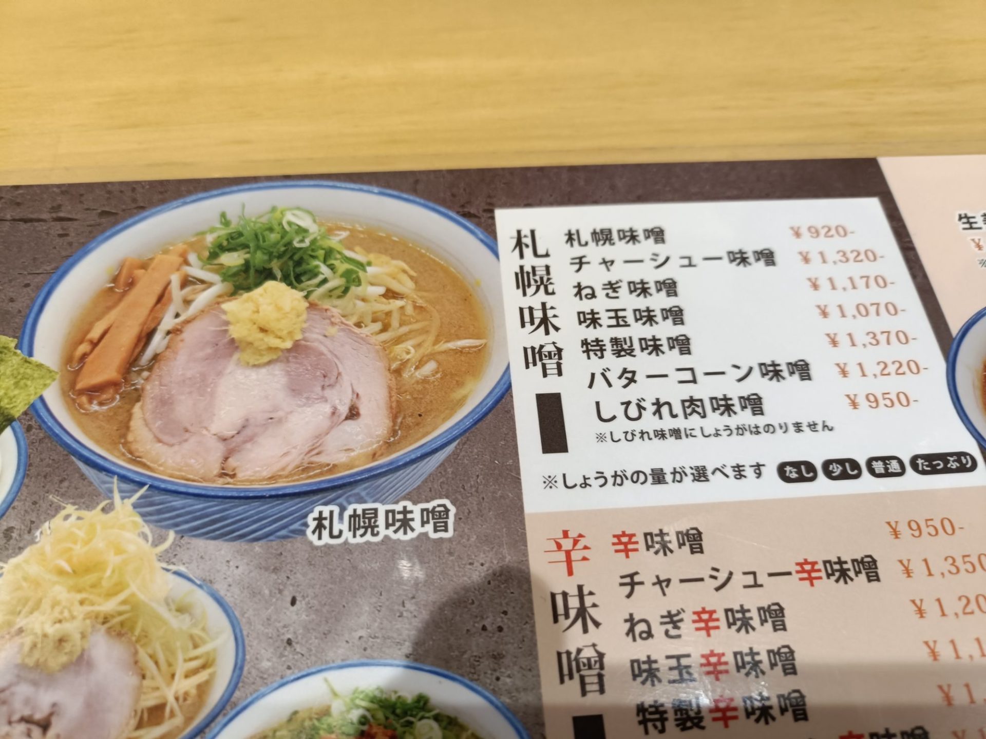 「札幌味噌ラーメン(920円) + 麺大(150円)」
