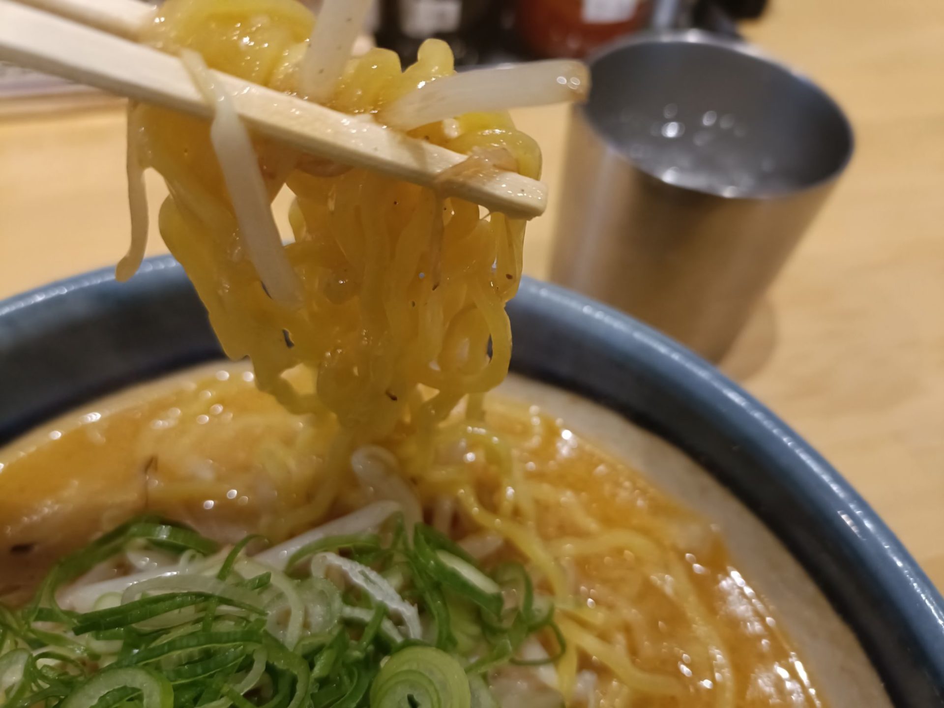 プリプリとした食感で、濃厚な味噌スープがしっかりと絡みつきます。大盛りにしたので食べ応えも十分!「麺を食べている!」という満足感がたまりません。