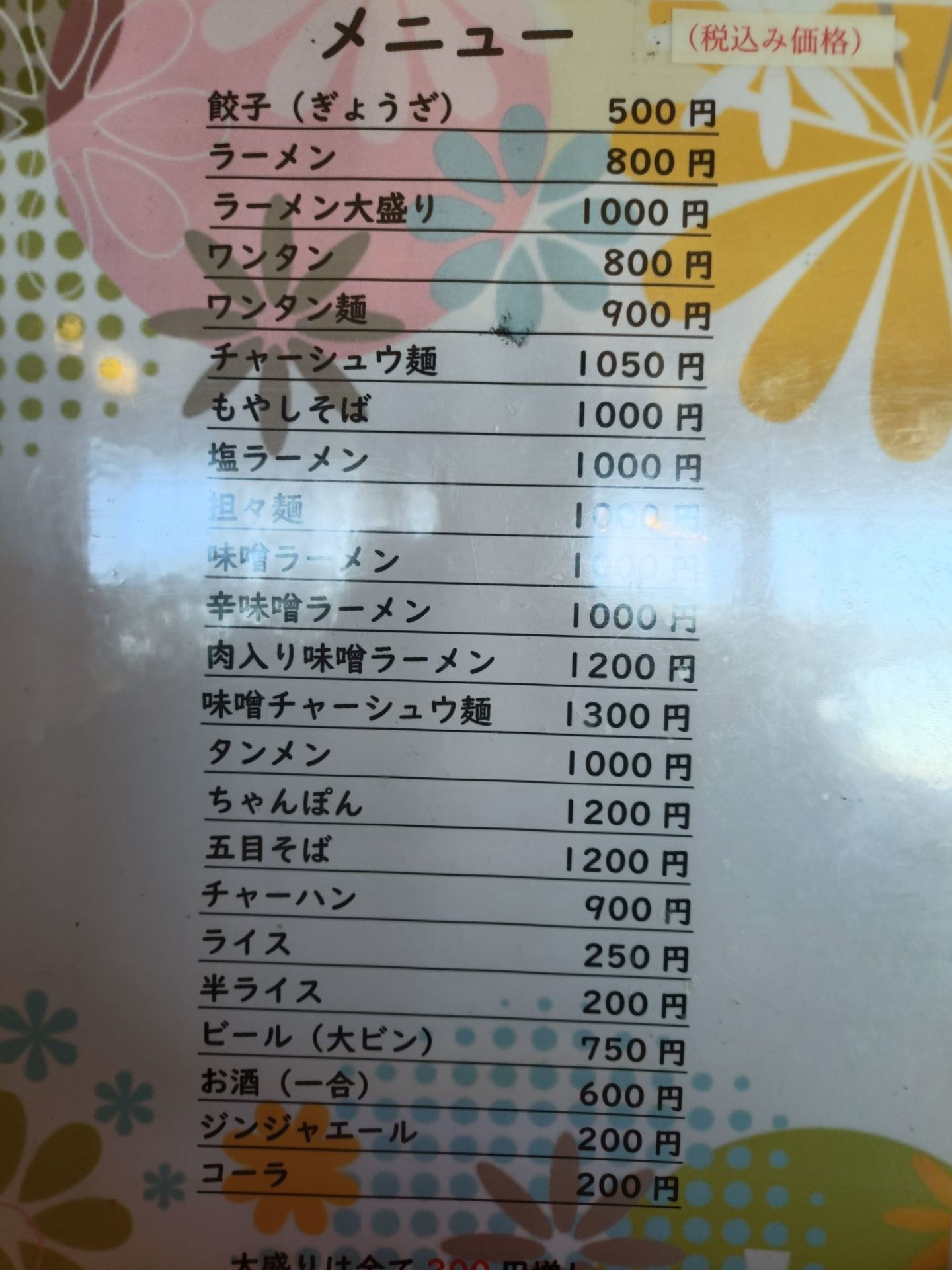「ラーメン大盛り(1000円)」を注文しました。