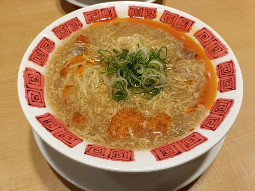 一方、妻は刺激的な味が好きなので、酸辣湯麺(サンラータンメン)をチョイス。