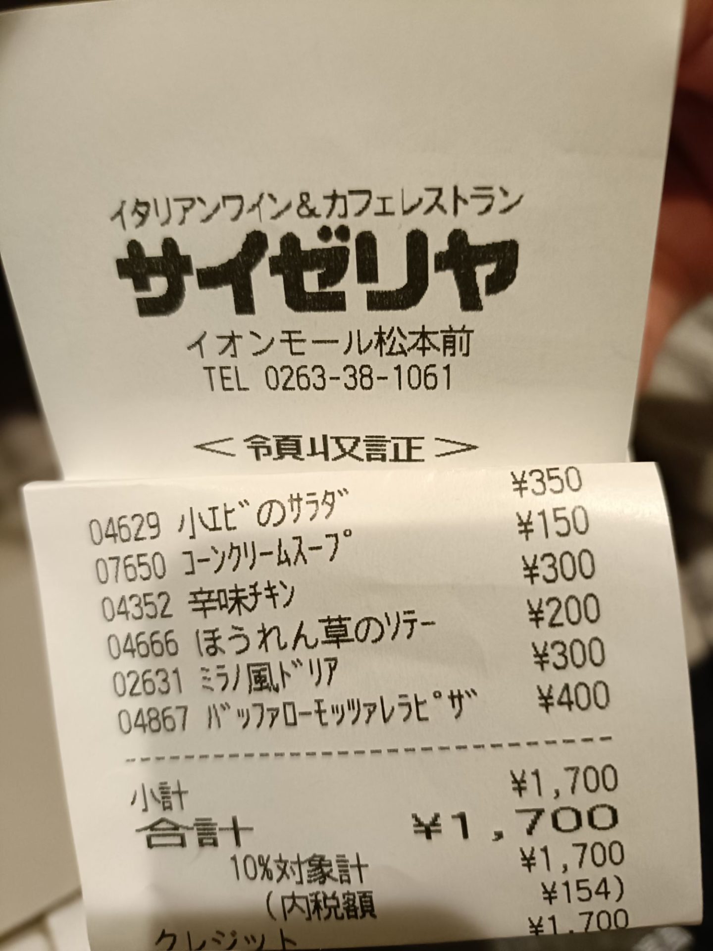 そんな会話から、久しぶりにサイゼリヤ イオンモール松本前店へ行ってきました。