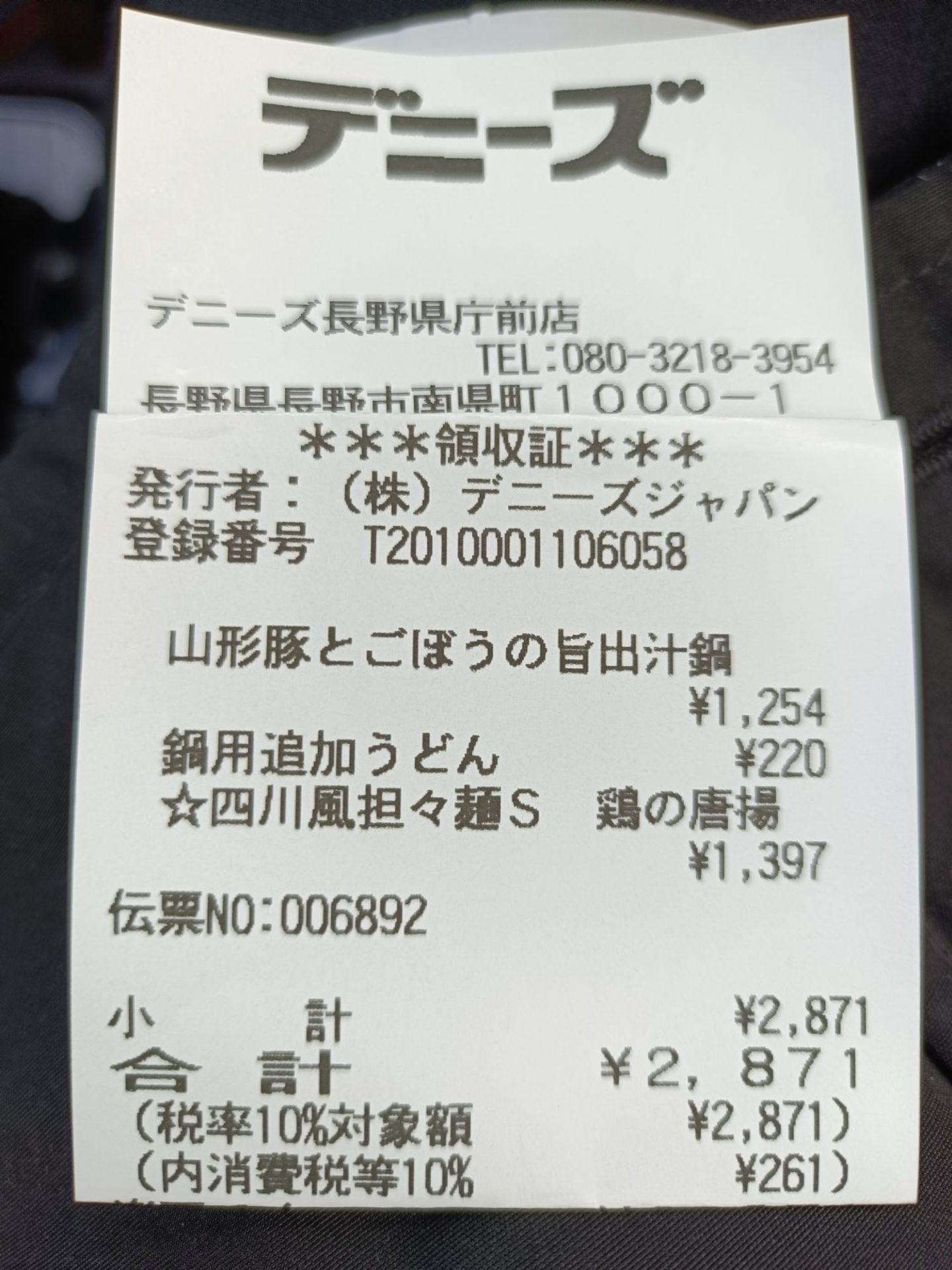 先日の祝日は、夫婦で「デニーズ長野県庁前店」へランチに行ってきました。