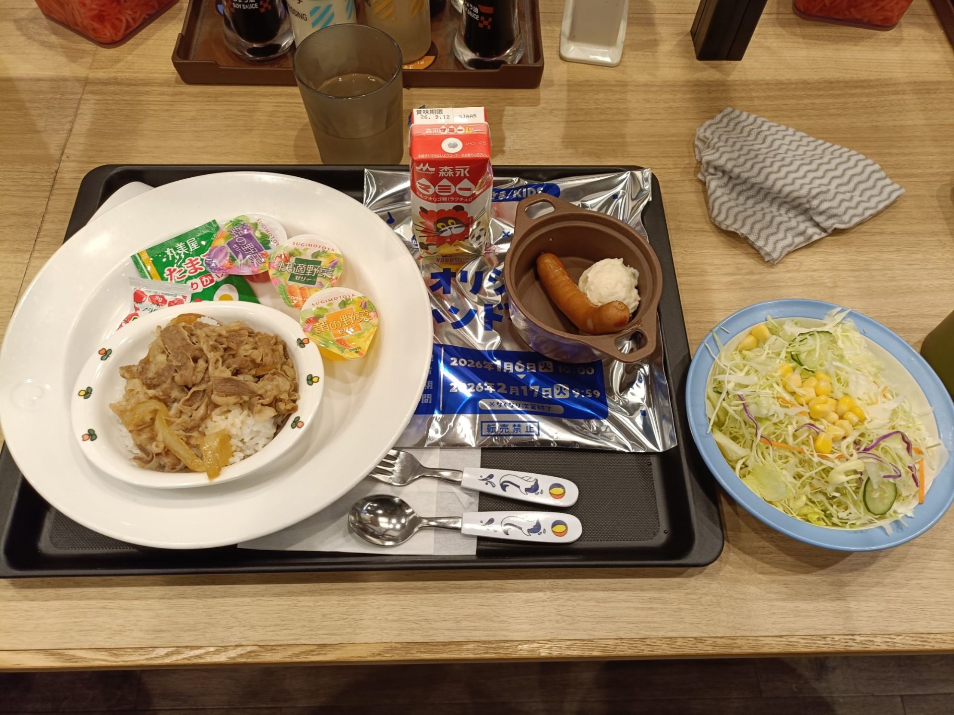 運ばれてきた「お子様セット」を見て、ふと自分の子供時代を思い出す。小さな器に盛られた牛丼、ちょこんと添えられたソーセージとポテトサラダ。そして、子供にとってはメインディッシュとも言える色とりどりのゼリーと、キャラクターが描かれたジュース。